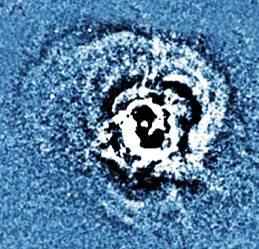 صورة بواسطة مرصد هابل لمركز المجرة M87 وتظهر وجود دوامة من الغاز حول ثقب أسود، وتدور هذه الدوامة بسرعة أكبر من 400 كيلو متر في الثانية.