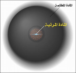 تمثل هذه الصورة مجرة مسطحة (مادة مرئية) في الوسط تحيط بها حلقة دائرية هي المادة المظلمة، وريما نتذكر أن النبي الأعظم عليه الصلاة والسلام قد شبه لنا السماء الدنيا بحلقة مرمية في فلاة أي في صحراء واسعة. وإذا كانت هذه الحلقات المظلمة التي تشكل المادة المخظلمة في الكون هي السماء فيكون بذلك النبي قد أعطانا وصفاً دقيقاً لحقيقة المادة المظلمة!! المصدرwww.bgsu.edu