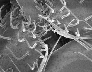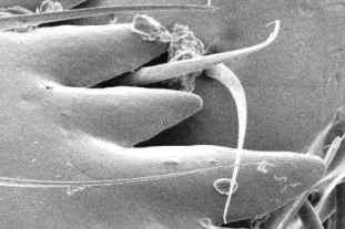 صورة لقرن الاستشعار لدى النملة (الهوائي)، وتأمل معي التعقيد والدقة في التصميم والصنع، مع العلم أن سماكة هذا الهوائي لا تتجاوز أجزاء قليلة من المئة من الميليمتر.