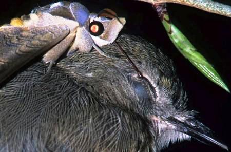 تظهر هذه الصورة أحد أنواع الطيور وقد أغمض عينيه وسالت منهما بعض الدموع، ولكن في هذه الدموع مواد إذا تراكمت يمكن أن تضر هذا الطائر، ولذلك فقد سخّر الله له فراشة تجلس على رأسه وتدخل أنبوبها الخاص بفمها وتمتص هذه الدموع وتتغذى عليها، والعجيب أن الطائر يكون سعيداً بهذا التعايش!! فانظروا إلى هذه المخلوقات التي لا تعقل كيف تتكافل وتتعايش وتتعاون، فماذا عنا نحن المؤمنين؟ ولذلك لا بد أن نتذكر قول الحبيب صلى الله عليه وسلم عن المؤمنين في توادهم وتراحمهم (كالجسد الواحد)، فهل يحب بعضنا بعضاً -على الأقل- مثل هذه المخلوقات ؟!